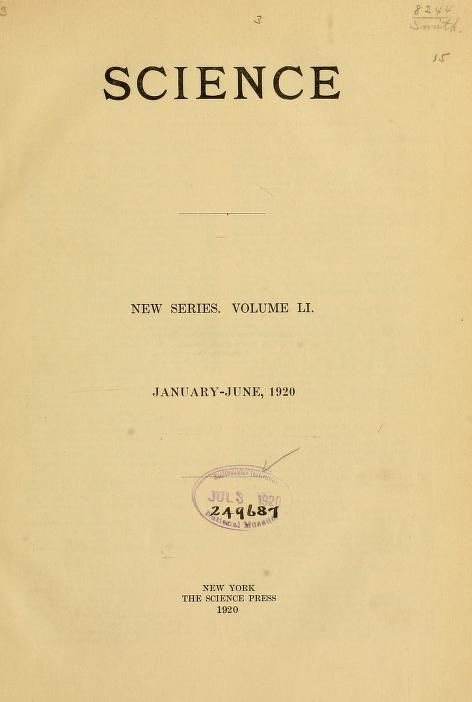 Número de 1920 de la revista Science, pags. 8 – , donde se publicó el artículo Time, Space and Gravitation . En el que menciona la teoría de la relatividad como una «Teoría de Principios».